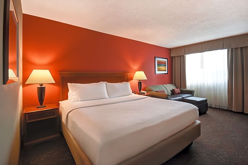 This room includes accessibility features including visual alarms and a hand-held shower head.